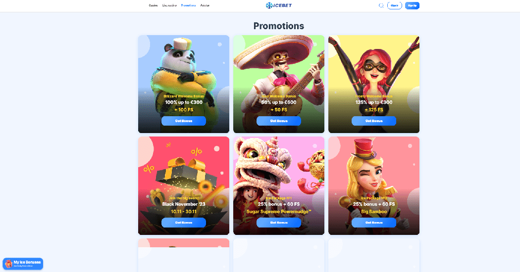 BetSoft, Blueprint, Big Time Gaming, ELK Studios, Evolution, Iron Dog Studio, iSoftBet, Microgaming, NetEnt, Pragmatic Play, Playtech, Play'N Go, Quickspin, Red Tiger, Thunderkick, and Yggdrasil are just some of the more than 40 gaming software suppliers that work with IceBet Casino. Smaller but no less formidable software houses like 12 Gaming, Amatic, August Gaming, Booongo, EvoPlay, Ezugi, Mascot, PariPlay, Playson, Push Gaming, Red Rake, and Spinomenal have also contributed to the market.