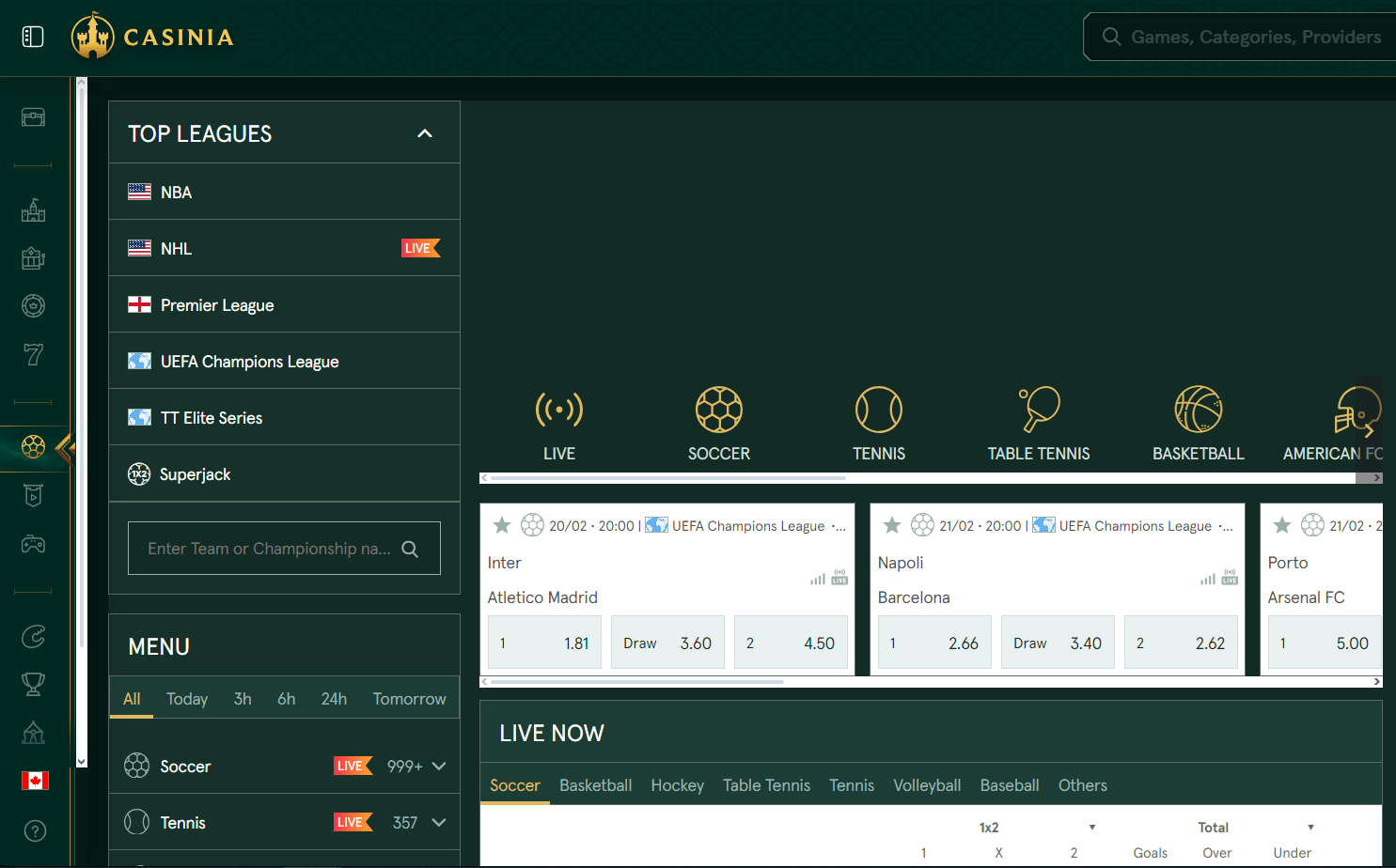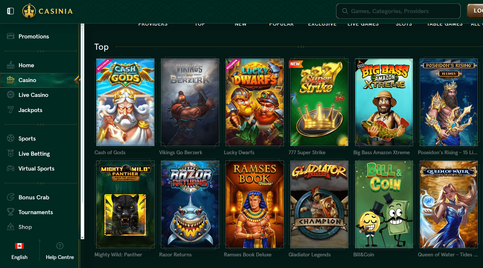If you are looking for a slot machine, table game, or live dealer option, Casinia has you covered with around 100 different providers. The massive library of almost four thousand titles includes not only the most well-known games from the most prominent creators, but also innumerable chances to discover smaller, less well-known studios. Select "Games" from the menu on the left to go to the games catalogue. The most popular sections of the casino, such as "Live Games," "Table Games," "Slots," and a few more, are conveniently located on the left-hand menu. You can use the top navigation bar to search by title or sort by provider once you have visited the catalogue. The categories for that casino are located just below that. The following sections are provided: "Game Hall," which contains the complete catalogue of games offered by the casino; "Top," which contains the most played and popular games at the casino; "New," which offers the opportunity to try the most recent titles in the iGaming field; "Popular," which contains the most beloved games of the casino; "Live Casino," which contains a vast catalogue of nearly a thousand live games, developed by companies like Evolution and Ezugi; "Table Games," which contains nu Click the "Feel Lucky" button beside the categories to access a randomly selected game if you are having problems making a selection.