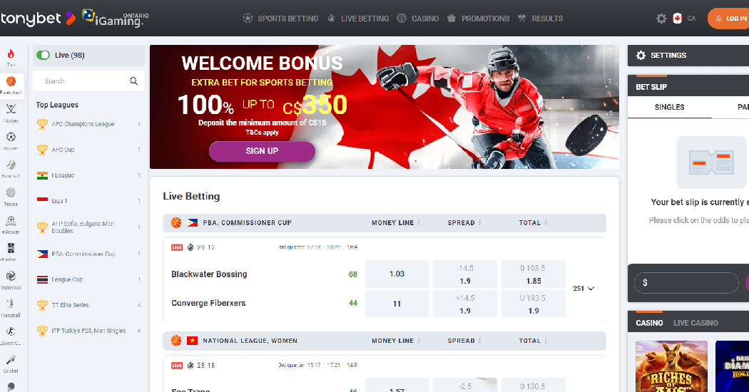 Prematch and in-play markets for major and minor events in over 20 sports, including football, tennis, basketball, ice hockey, and more, are available to sports bettors. At TonyBet, you can also wager on Esports, such as Counter-Strike, Dota 2, Starcraft, and others.