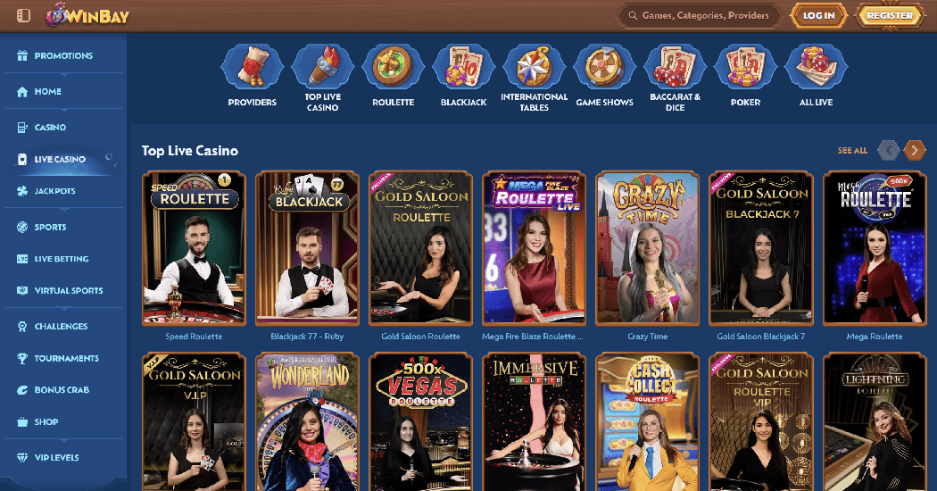 With over 8,000 games to choose from, Winbay Casino has something for every kind of player. A wide variety of slot machines, including traditional, video, and progressive jackpot games, are available on the site. Famous producers like Pragmatic Play, NetEnt, Evolution Gaming, and Play'n GO have made their popular titles easily accessible, guaranteeing top-notch gameplay. In addition to slot machines, players can choose from a wide variety of table games at this casino, including as poker, blackjack, roulette, baccarat, and many variants of each. For a more realistic online gambling experience, check out the live casino section, where you may play games in real time with actual dealers. Bettors can take advantage of Winbay Casino's sportsbook and competitive odds on a wide range of sporting events.