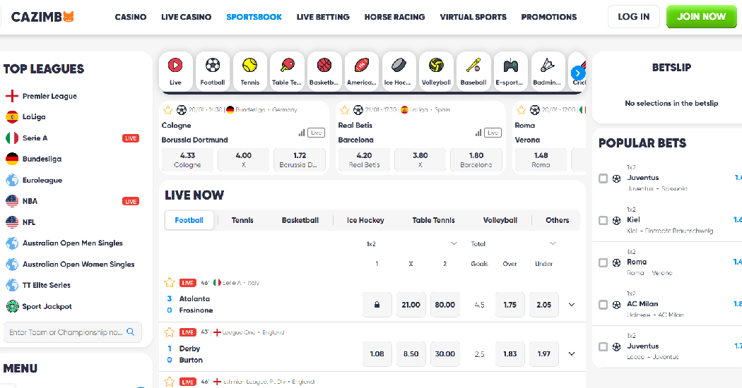 Cazimbo has an enormous selection of gaming options to satisfy every taste. More than 3000 games, including several jackpot, Megaways, and video slots titles including Book of Tribes, Sweet Bonanza, Starburst XXXtreme, Razor Shark, Starz Megaways, Divine Fortune Megaways, Twin Spin Megaways, and many more, are available in the casino section. Numerous card table games are available as well, including Sic Bo, Baccarat, European or American Roulette, Single or Multi-hand Blackjack, Craps, Dragon Tiger, and Poker, among others. Additionally, the casino offers prematch and live markets on thousands of events, allowing you to wager on over 20 different sports. You can also experiment with virtual sports, such as tennis, football, horse racing, and greyhound racing, among many others.