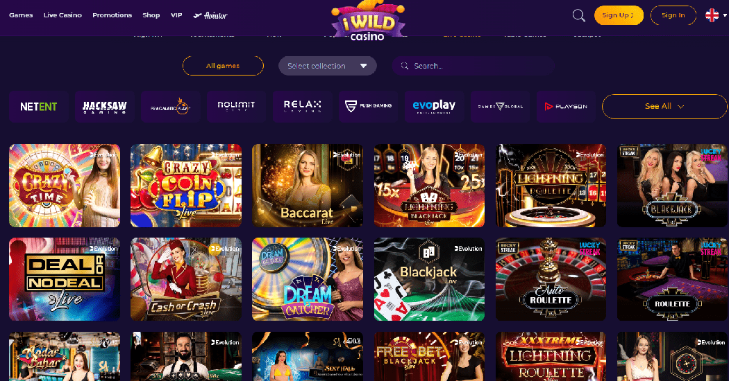 iWild has worked with top-tier gaming software companies like Pragmatic Play, Play'N Go, NetEnt, Microgaming, Thunderkick, Big Time Gaming, Yggdrasil, ELK Studios, Quickspin, BetSoft, Blueprint, Evolution, Iron Dog Studio, iSoftBet, Playtech, and Red Tiger to create its extensive library of games. Smaller but nonetheless respected studios like NoLimit City, Relax Gaming, Push Gaming, EvoPlay, Playson, Apollo Games, Wazdan, and others have their wares available as well.