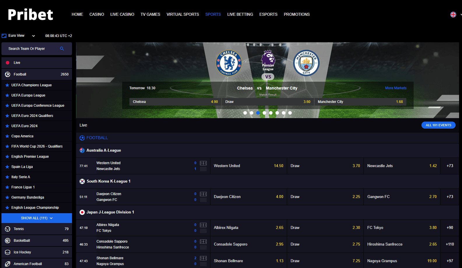 PriBet's sportsbook covers over 30 different sports, including football, tennis, basketball, ice hockey, rugby, cricket, virtual football, cycling, greyhound races, golf, and more. Users can also place wagers on eSports events such as Counter-Strike: Global Offensive, Dota 2, King of Glory, and League of Legends. This diverse range of sports and eSports options caters to a wide audience of sports enthusiasts and gamers.