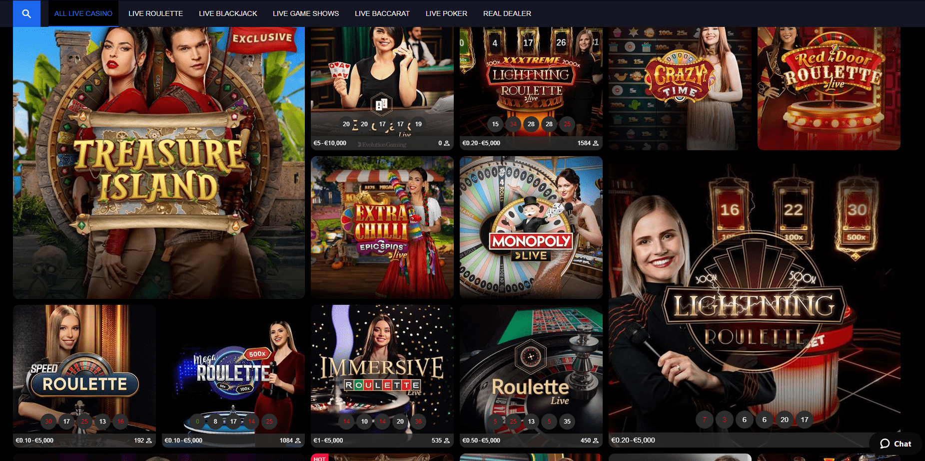 Many different types of blackjack, baccarat, roulette, craps, dragon tiger, standard baccarat, speed baccarat, sic bo, aces and faces, Caribbean stud, oasis poker, and many more are available.